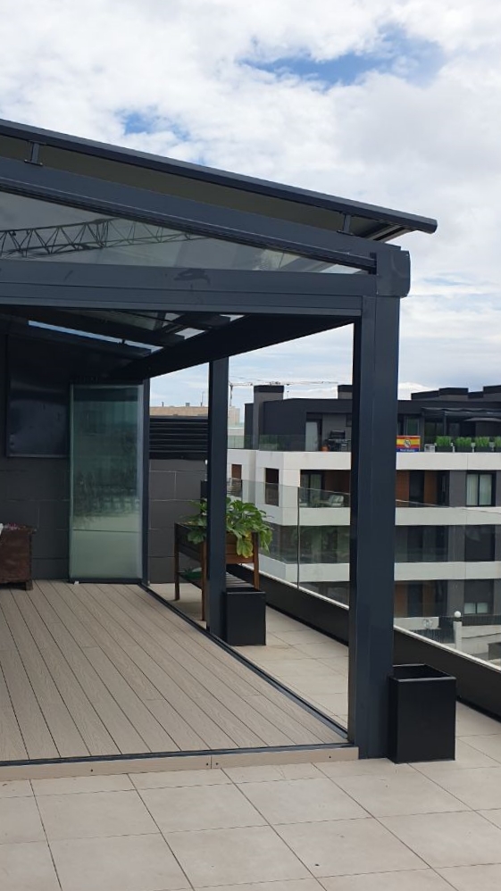 La versatilidad del aluminio permite crear cerramientos únicos que se adaptan a cualquier proyecto. Desde techos fijos en espiga hasta terrazas con desniveles, este material ofrece infinitas opciones de diseño. Combinado con vidrio o madera, el resultado es un acabado estético que refleja el estilo personal de cada cliente.