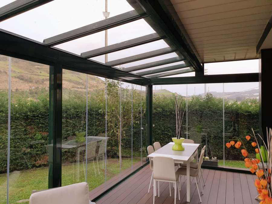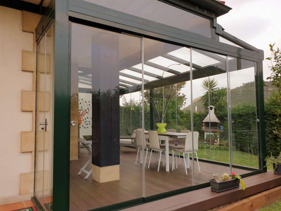 Los techos fijos, disponibles en cristal, policarbonato o panel sándwich, ofrecen protección sin renunciar a la luminosidad, mientras que las cortinas de cristal permiten abrir o cerrar el espacio según lo necesites.